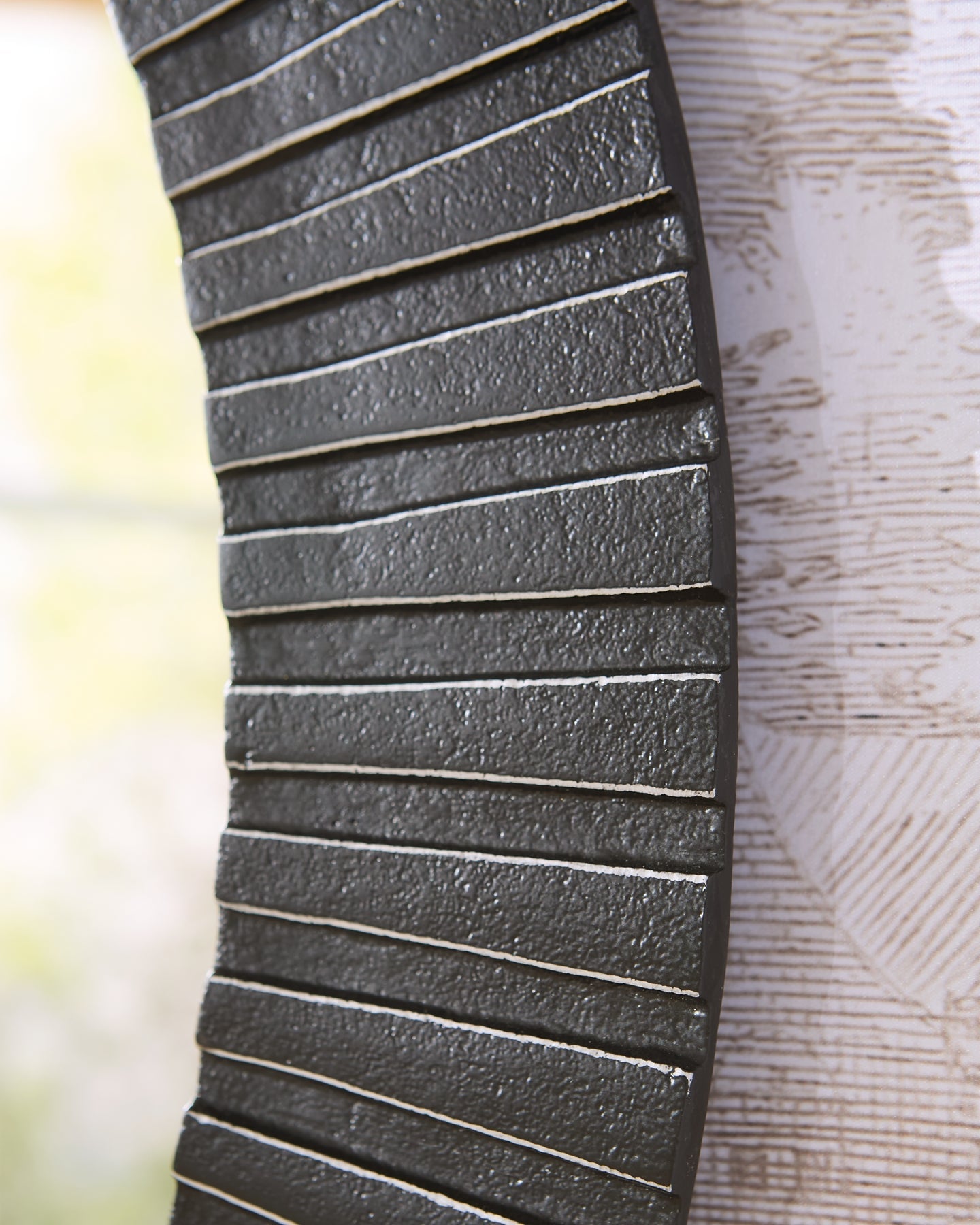 Avec son design nervuré saisissant et sa finition contrastante noire et argent vieilli, ce miroir d'appoint apporte une touche de sophistication moderne à votre intérieur. Son cadre en aluminium moulé offre une sensation de robustesse et de solidité, ce qui en fait un ajout durable à votre intérieur. Simple et élégant, il reflète à la fois la lumière et le bon goût.